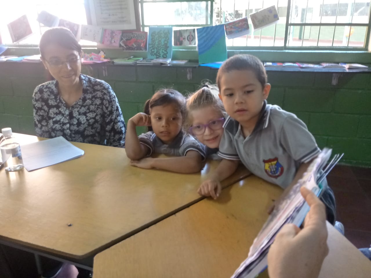 Docente Marisol con los niños de transición mostrando sus propias evidencias..