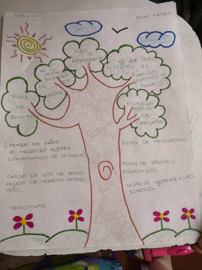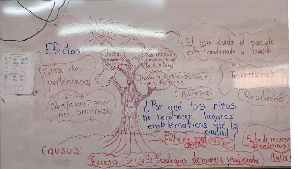 Este encuentro fue una experiencia significativa, dado que, nos correspondió dar a conocer la estrategia del libro viajero a los demás invitados de otros colegios, esto fue de gran impacto hacia los docentes y niños, porque vieron lo importante que se convierte esta bitácora de vida en todo nuestro proceso, para llevar acabo esto realizamos en ayuda de otros compañeros el árbol de posibles soluciones, efectos y causas por lo que nuestros niños no reconocen la ciudad.