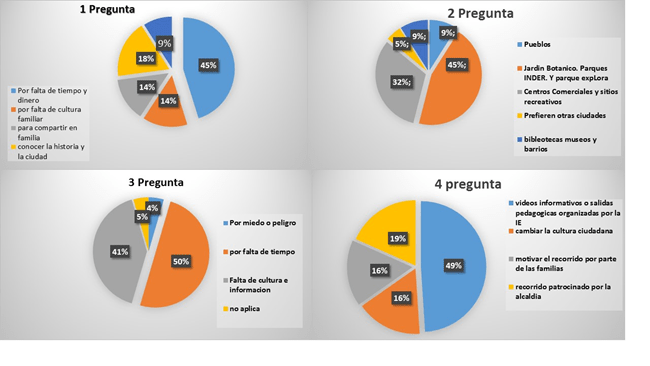 Este resultado se observa desde las encuestas aplicadas a los padres de familia, con el fin de tener conocimiento del porque ellos no reconocen la ciudad y los lugares que esta tiene.